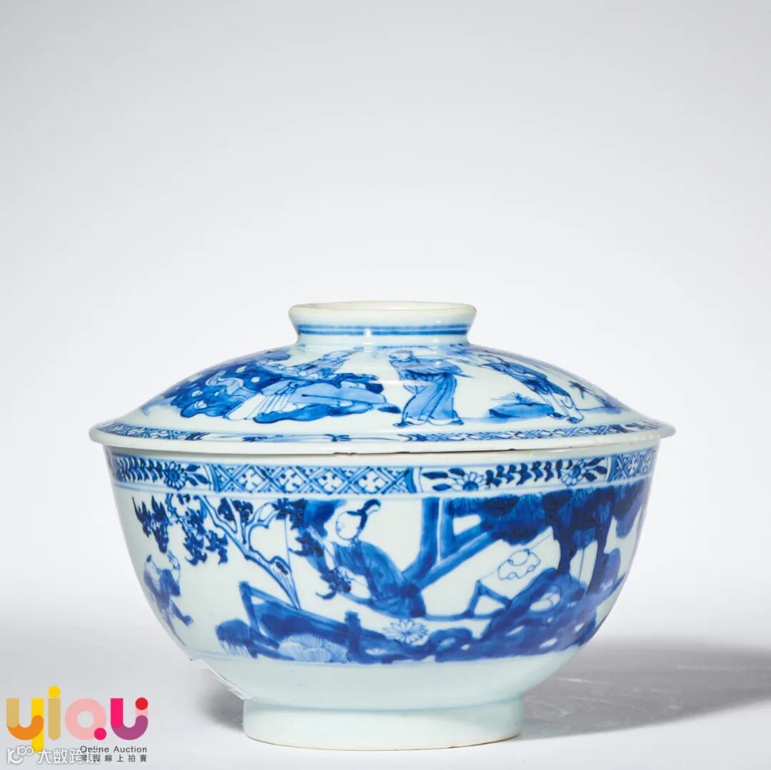 清雍正 青花人物故事图盖碗