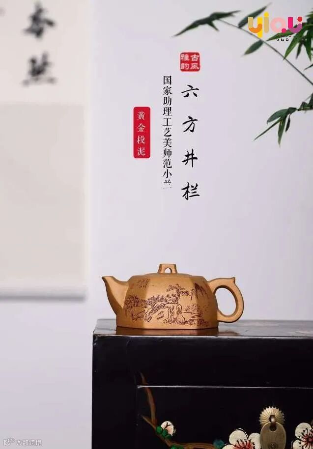 此款壶体原始造型为井栏,塑成六方,肌理莹润,巧妙运用直线、曲线,使壶形简约美观、流畅大气,更令其形体明快挺秀,器型看似简单,却需要有深厚的制作技术,方能将此器的精髓把握住,才能发挥得恰如其分。