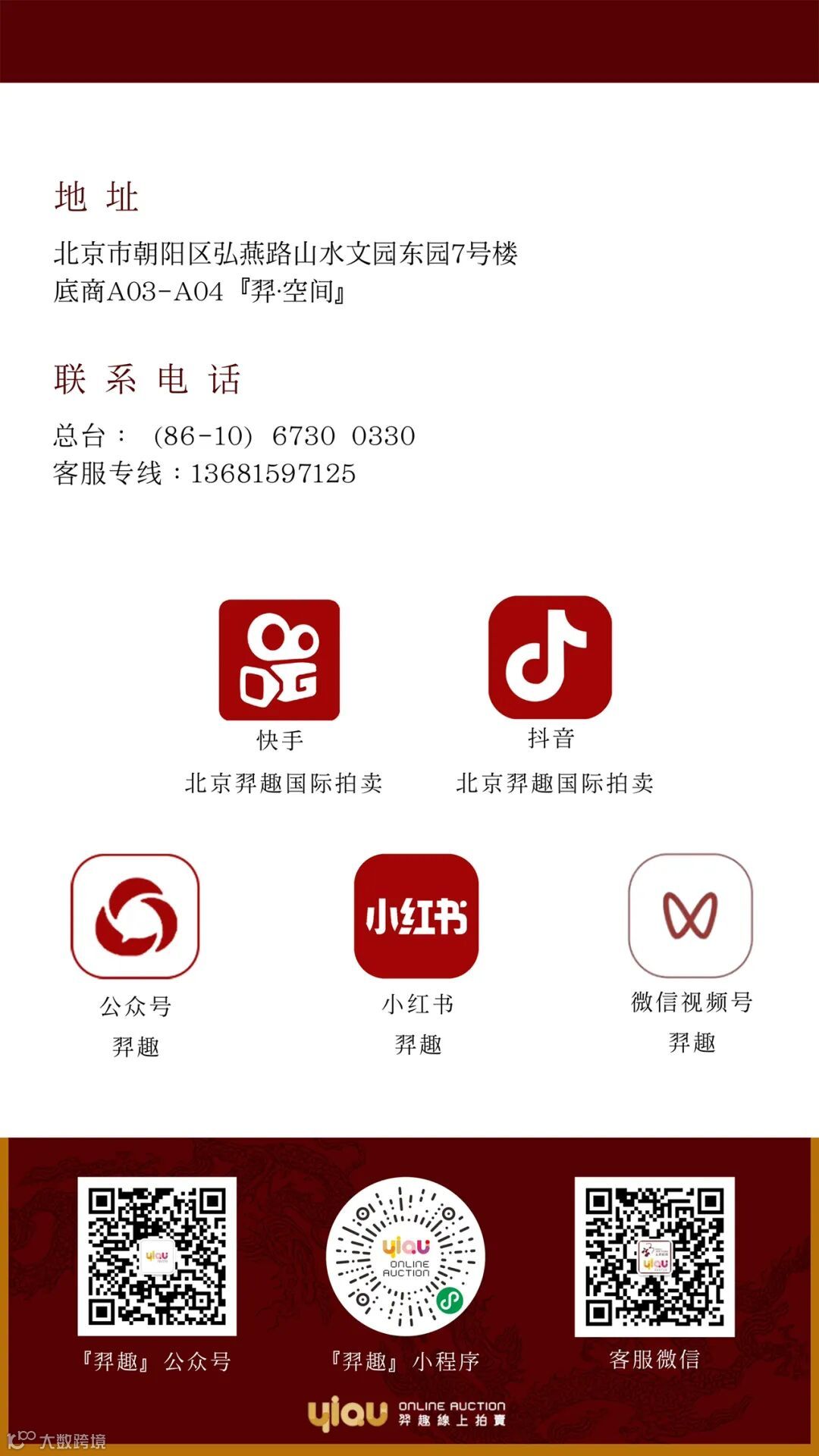 预展、拍卖地点 羿空间 (北京市朝阳区弘燕路山水文园东园7号楼底商 A03-04)
