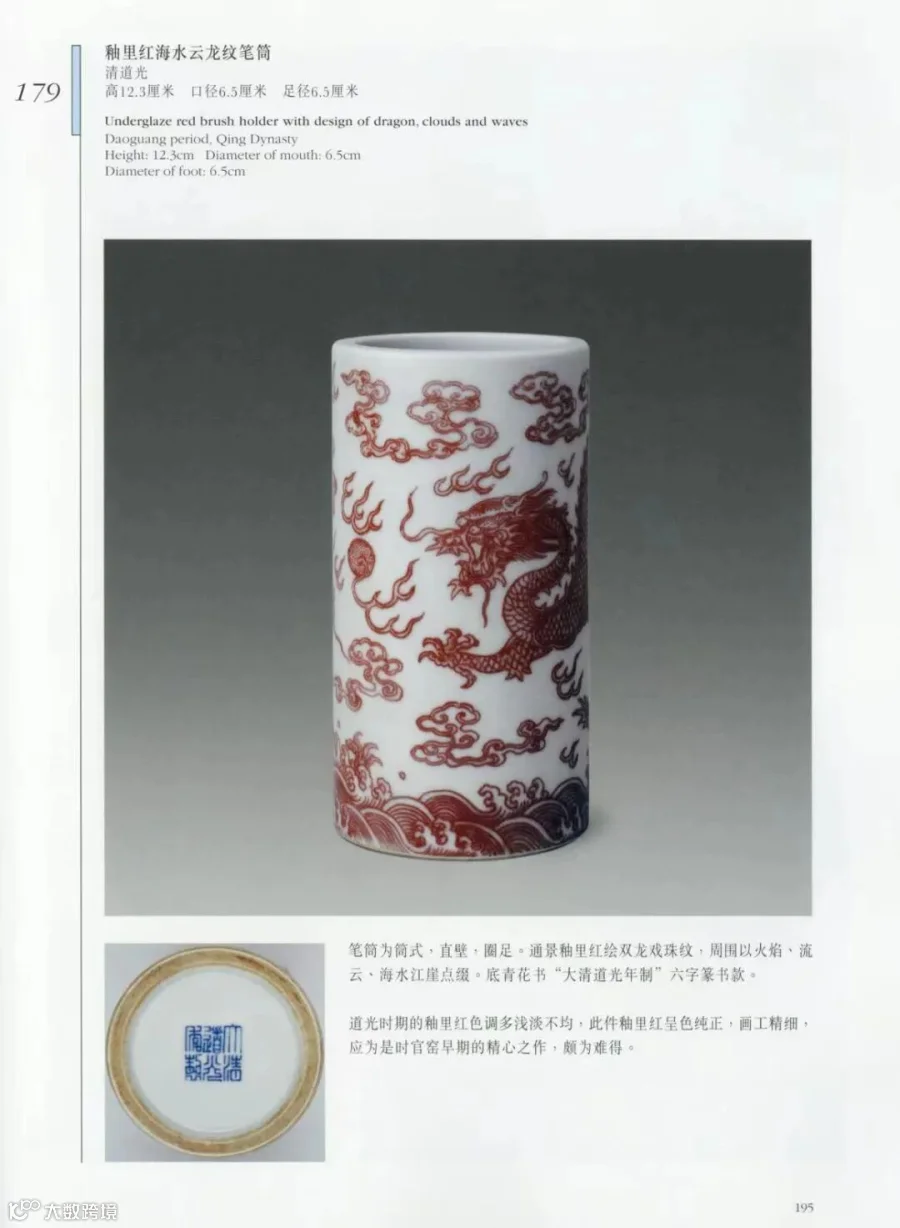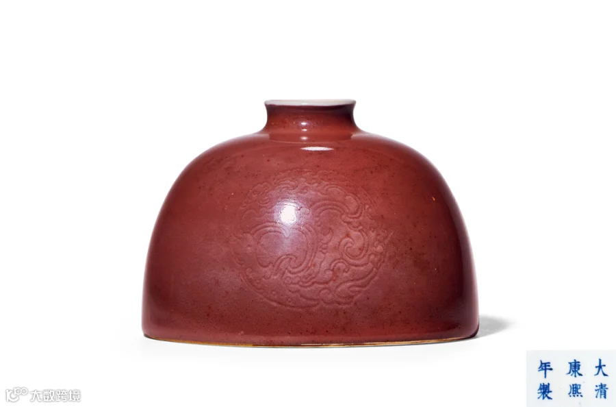 由此,可见道光御瓷之中,文房雅器本已不多,釉里红题材更加罕见,本品堪称稀有之物,虽有瑕疵,然不掩其美,置于案头,处处见妙!