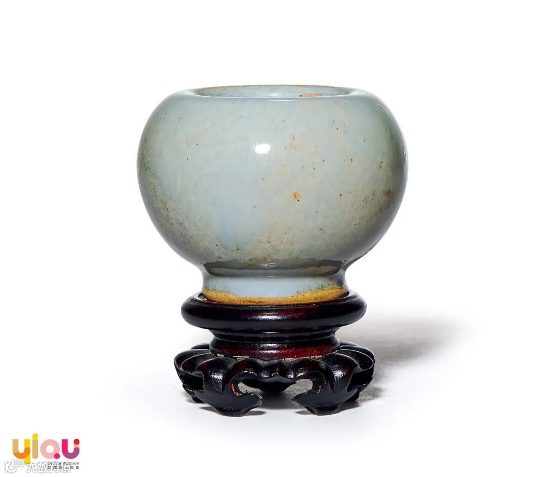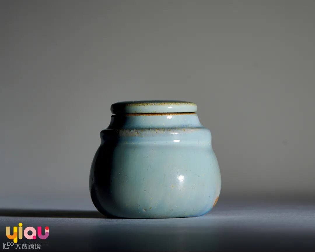 明清两代,宜兴生产一种带釉的陶器,由于这类产品和宋钧窑有某些相似之处,宜兴钧陶在明代中叶被称为“宜钧”或“欧窑”,是宜兴陶艺中可以与紫砂相媲美的艺术品。由于其丰沛的文化积淀和艺术含量而得到历代宫廷的青睐。其“欧窑”的得名与明代万曆年间宜兴陶工欧子明所烧宜钧器形端重、釉彩绚丽且出品精良有关。“欧窑妍且垮,绚丽同晨葩”、“灰中有兰晕,艳若蝴蝶花”,这是人们对欧窑釉色绚丽多彩的赞句。它的釉色以天青、天蓝、云豆等色居多,还有葡萄紫,也有似越窑的缥色、甜白、淡青二色,而以本拍品之灰蓝釉色最为珍贵。<br>最早出现对于欧窑的记载能追溯到欧窑的创始期,明人所著《荆溪疏》和《阳羡名陶录》,是研究明代宜兴窑的重要文献。据《饮流斋说瓷》所述,欧窑一名“宜钧”,乃明代宜兴人欧子明所製,形式大半仿钧,故曰“宜钧”也。製品虽出宜兴,然与阳羡名陶一系微有差别,与清代紫砂挂釉各器亦微有不同。大抵製造时仍参入瓷质,非纯用紫砂者欤?瓶、盂等物皆有,而尤以洗类为多。<br>轴头罐为明代永乐时期名品,因形似卷轴画的轴头而得名,极为罕少,后朝仿烧品亦寥寥无几,因而传世品较为难得,宜钧釉製品则更为罕见。
