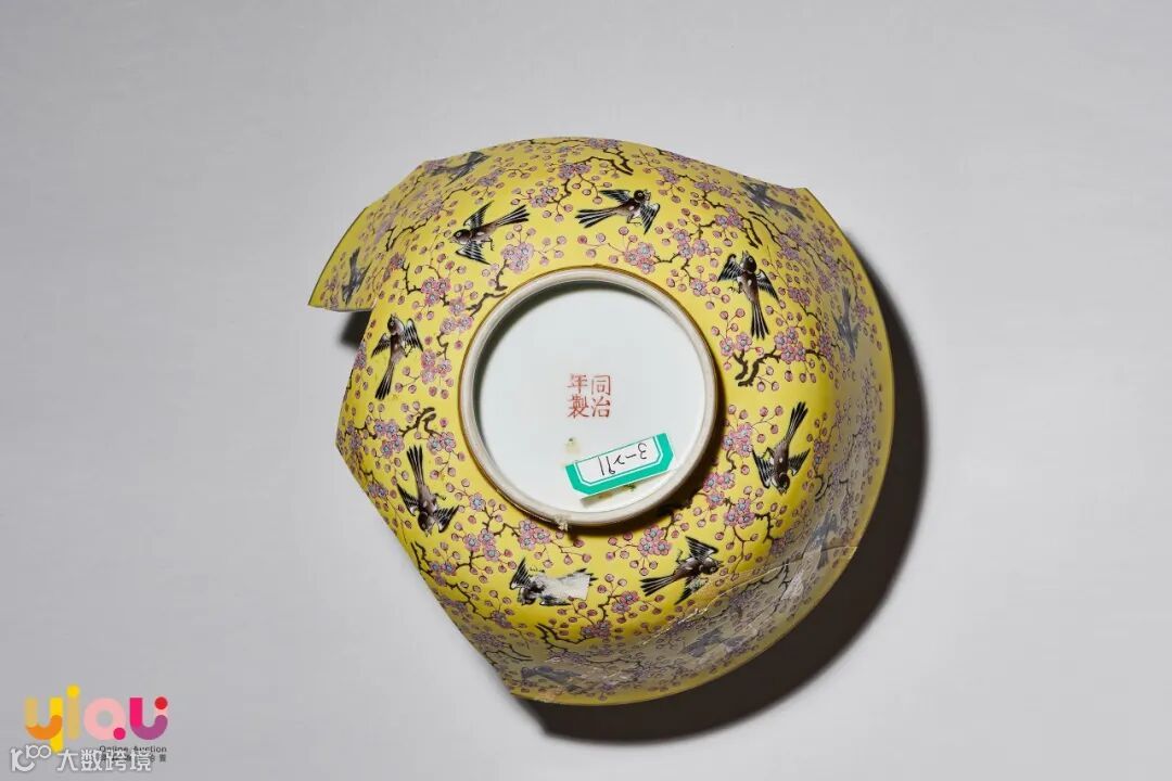 黄地粉彩喜上眉梢纹碗
