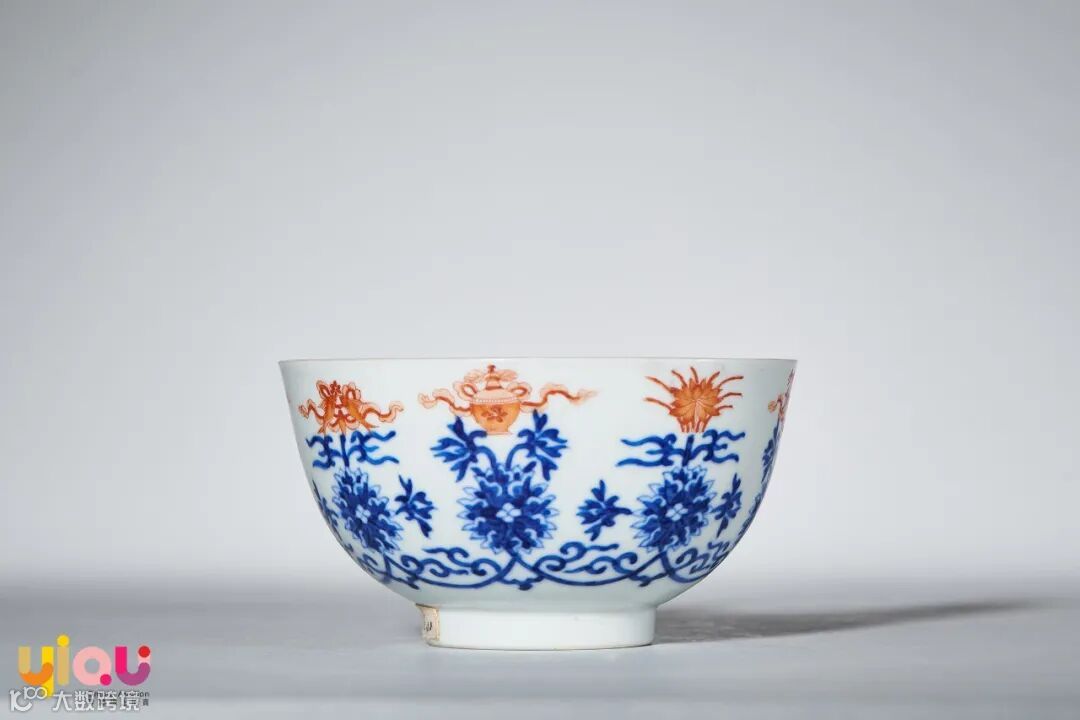 青花矾红缠枝莲托八宝纹碗