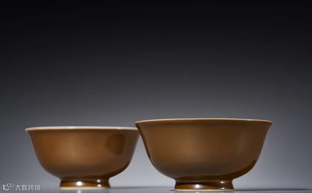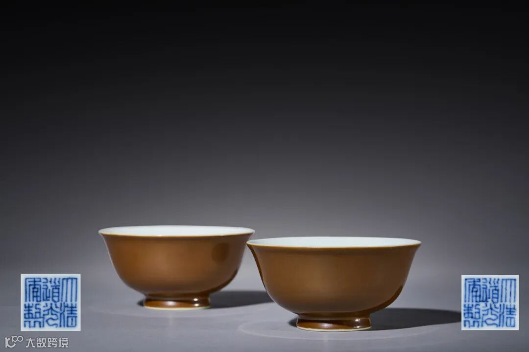紫金釉又称“柿色釉”、“京酱釉”,是一种以铁为呈色剂的高温釉,始烧于明初,但呈色颇不稳定,直至清代其烧造技术方完全成熟。本品为清代官窑的传统品种,通体施紫金釉,釉面匀净光洁,底露白胎,通体的酱色形成鲜明对比,极为美观。成对保存,颇为不易。
