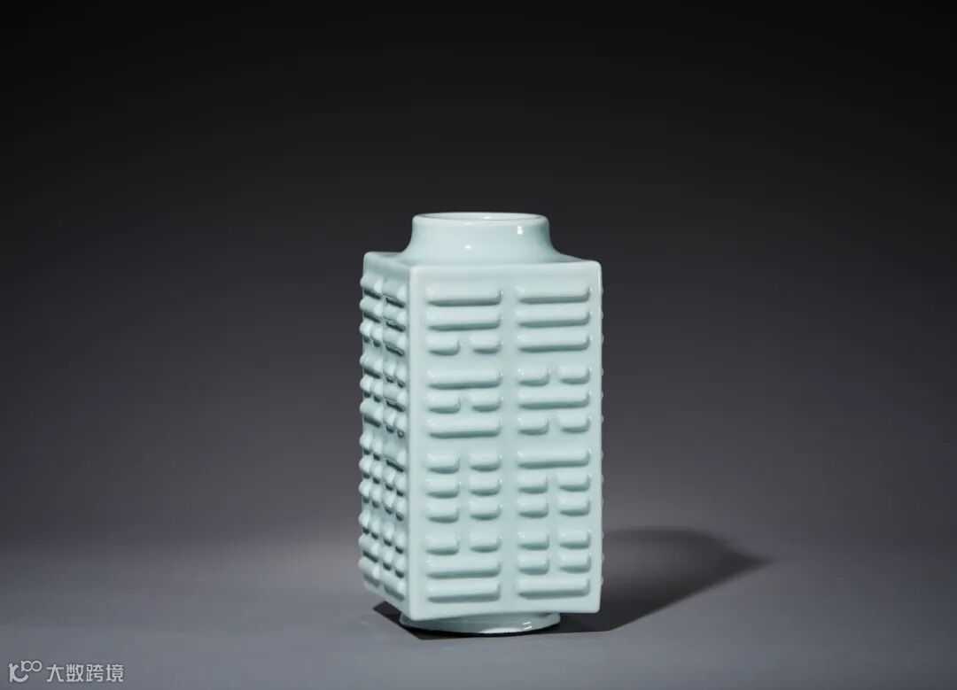 琮式瓶为清代官窑的经典器型,其外壁有素面和堆贴八卦纹两种装饰之区别,此件拍品的装饰纹及为后者,亦称“四方八卦瓶”,是从宋代起,仿照商、周玉琮加以变化而烧成的一种特殊器型。《周礼·春官·大宗伯》记载“以玉作六器,以礼天地四方:以苍璧礼天,以黄琮礼地,以青圭礼东方,以赤璋礼南方,以白琥礼西方,以玄璜礼北方。”