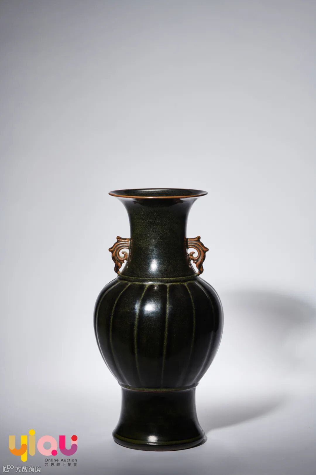 LOT42 清中期 茶叶末釉双耳撇口尊