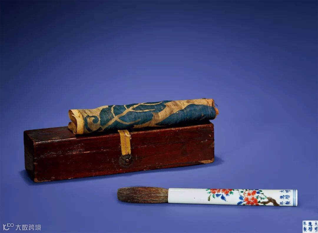 中国古代制笔工艺不但讲究实用价值,而且注重装饰效果的重要性,各种不同材质开始用于毛笔制作。瓷质笔管最早见于宣德,清代继续流行,此器就是康熙时期代表作品。此笔以瓷为管,长锋羊毫,釉面肥润,胎质洁白细腻,上施以五彩花卉,呈色稳定艳丽,为精致稀有的康熙小件文房器物。