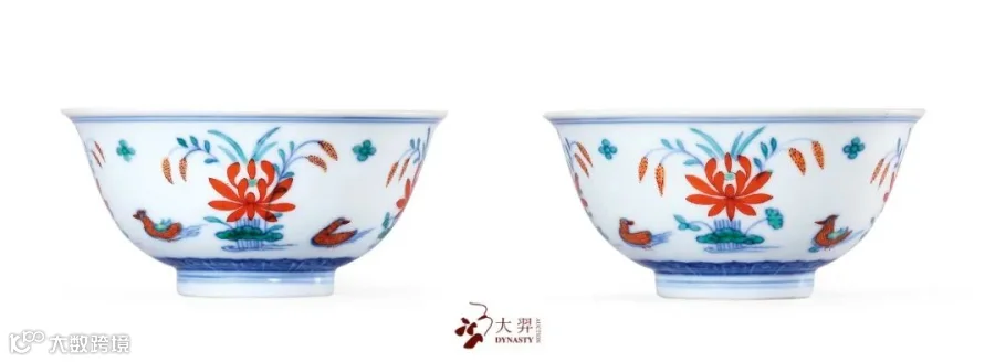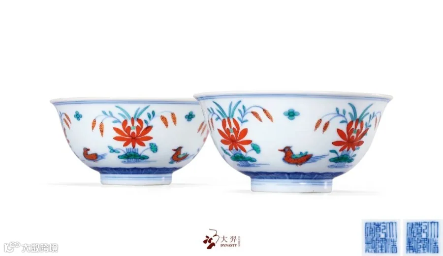 斗彩荷塘鸳鸯图碗一对 款识:“大清乾隆年製”六字双行楷书款 直径:10 cm. 参阅:《江西藏瓷全集-清代(上)》,朝华出版社,2005年,页241
