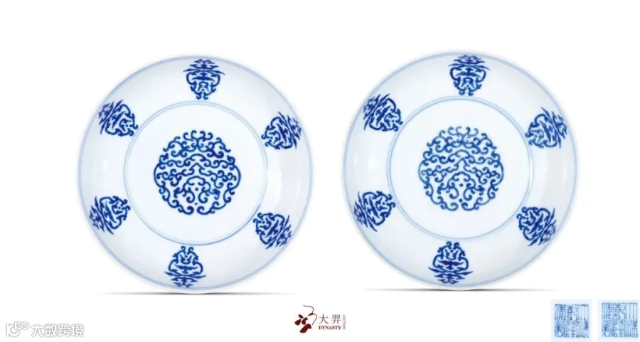 青花缠枝莲纹盘一对 款识:“大清康熙年製”六字双行楷书款 直径:15 cm. 记录:北京保利,2011年12月8日,编号8040