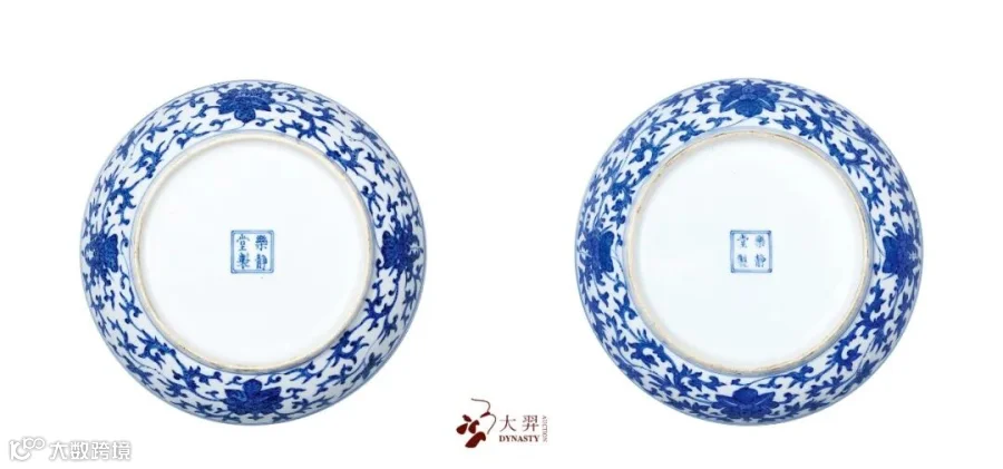 LOT53 清乾隆青花缠枝花卉纹盘一对(底部图)