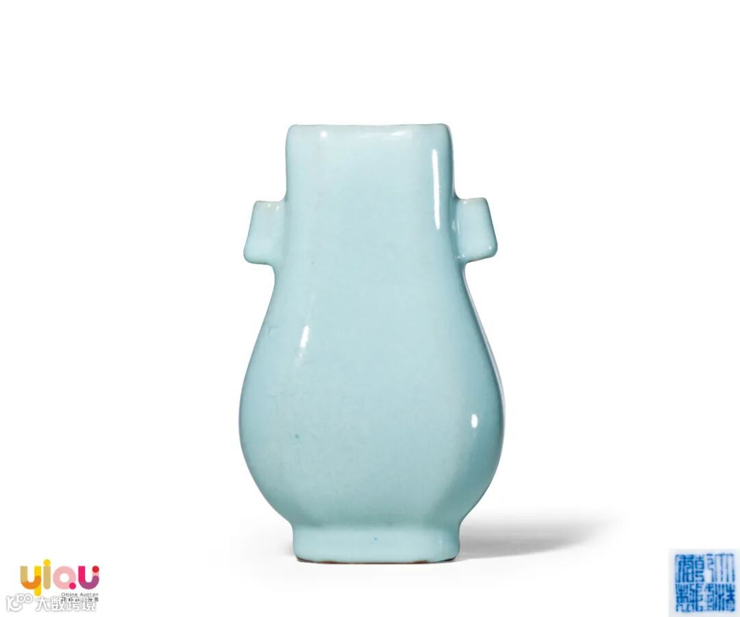 贯耳瓶造型源于上古青铜器,宋代官窑首先将其运用于瓷器之中。此类于《清档》中称之为“八方双管瓶”,清代贯耳瓶器形多样,有圆、方之分、大小之别。如本品式样八方贯耳瓶,常见有两种,一类高度为十四公分的小尺寸贯耳瓶,一类高度为三十至四十公分的杏圆贯耳方瓶,本品即为小尺寸者,手可盈握把玩。
