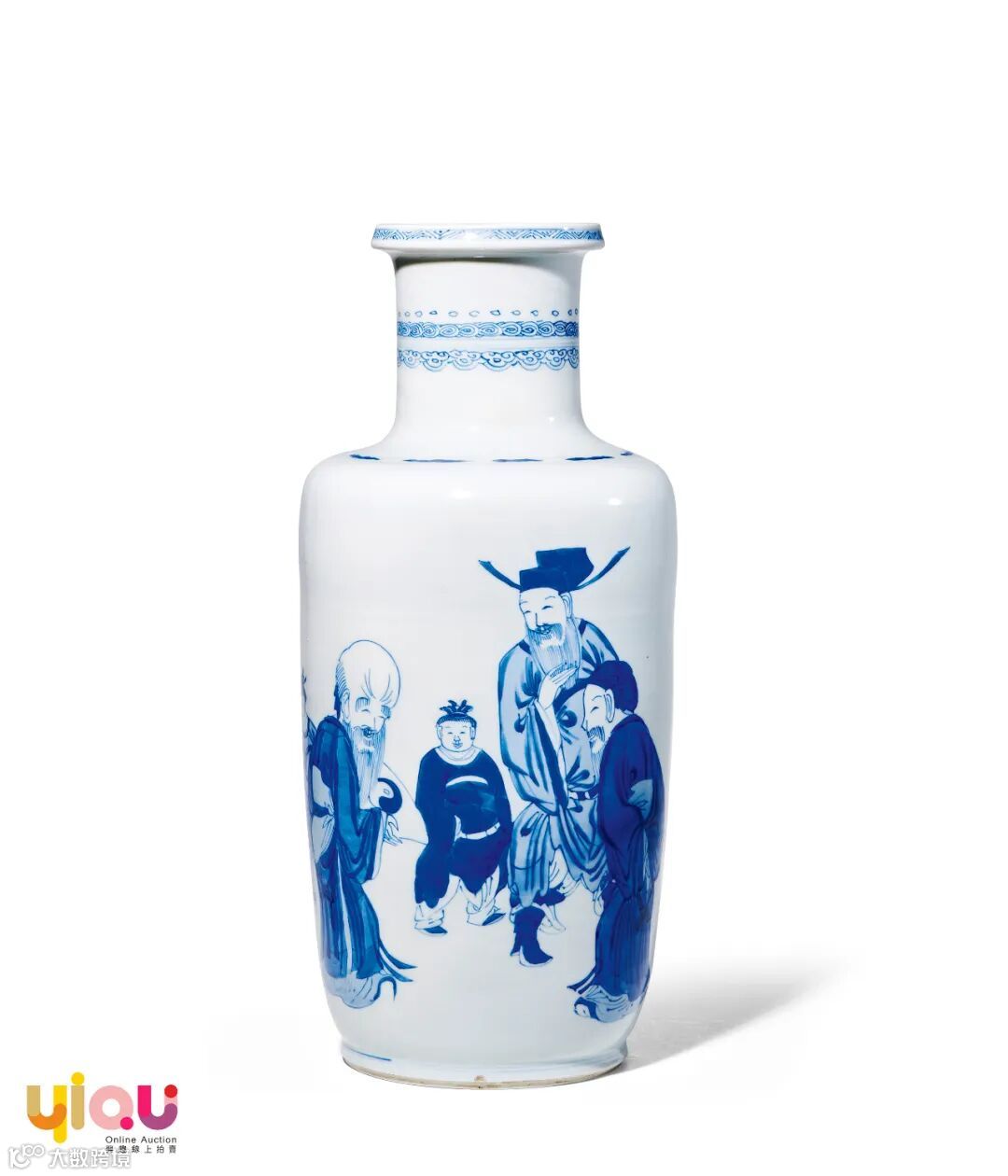拍品瓶盘口,直颈,圆肩,腹渐鼓,瓶身一侧腹部以上等青料书写百寿图,字形规整雅致,发色深沉,疏密得当,寓意长命百岁,吉祥如意。另一侧,则以青花绘有福禄寿三星图,寓意多福、多禄、多寿。此瓶胎质细密,釉色明亮,堪为陈设佳器。