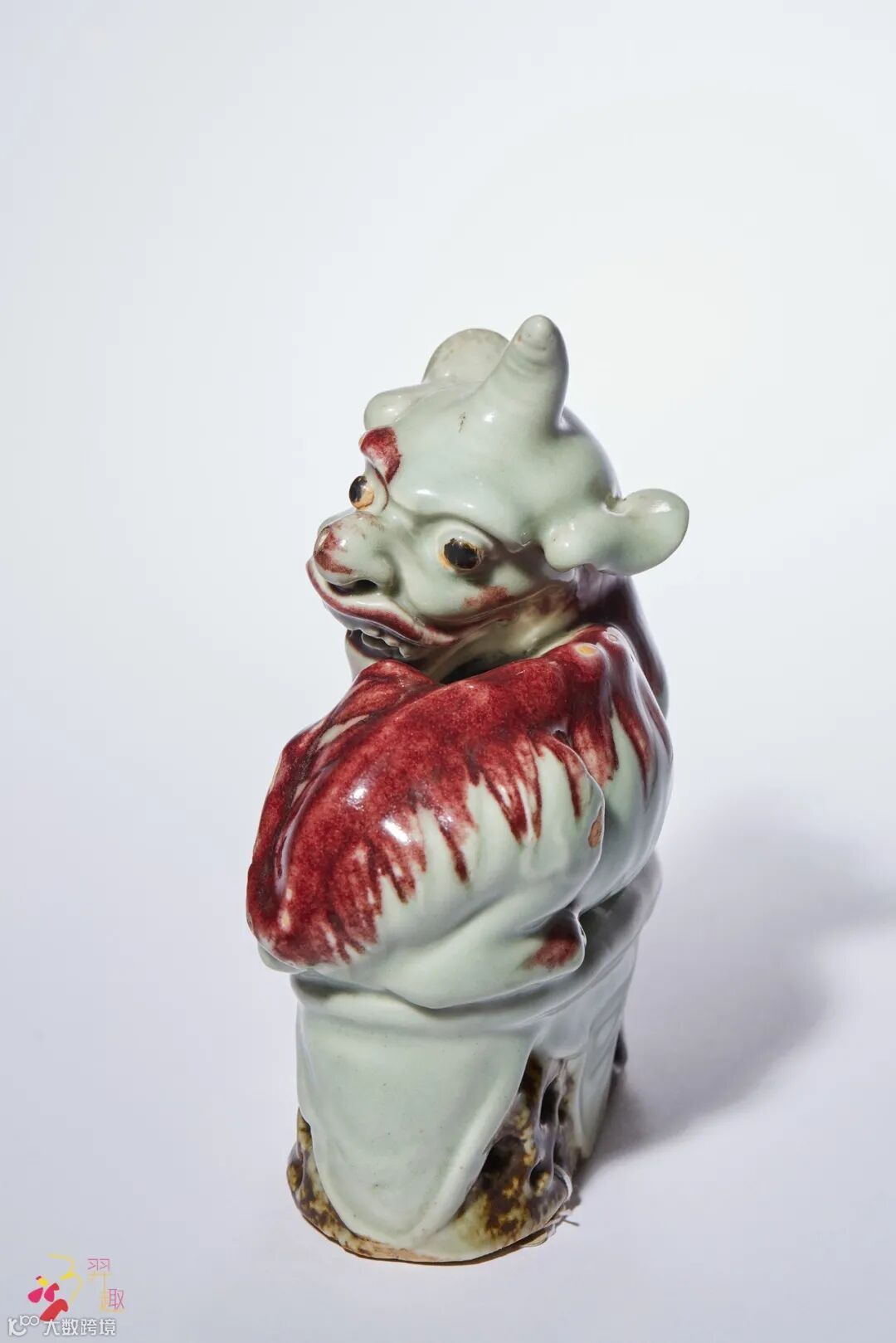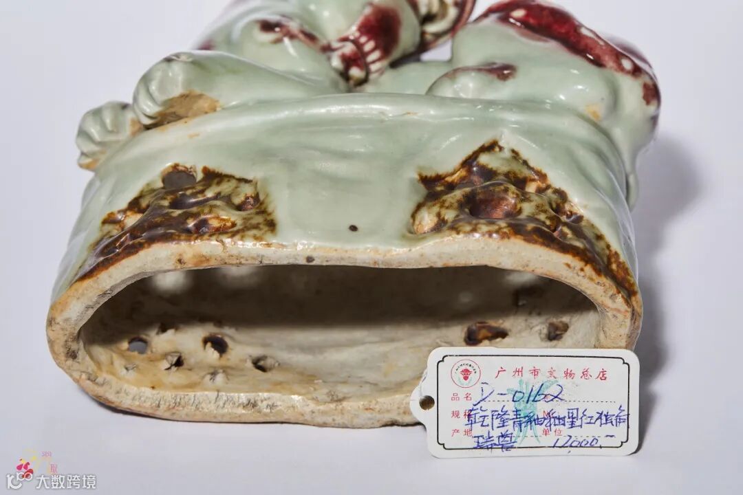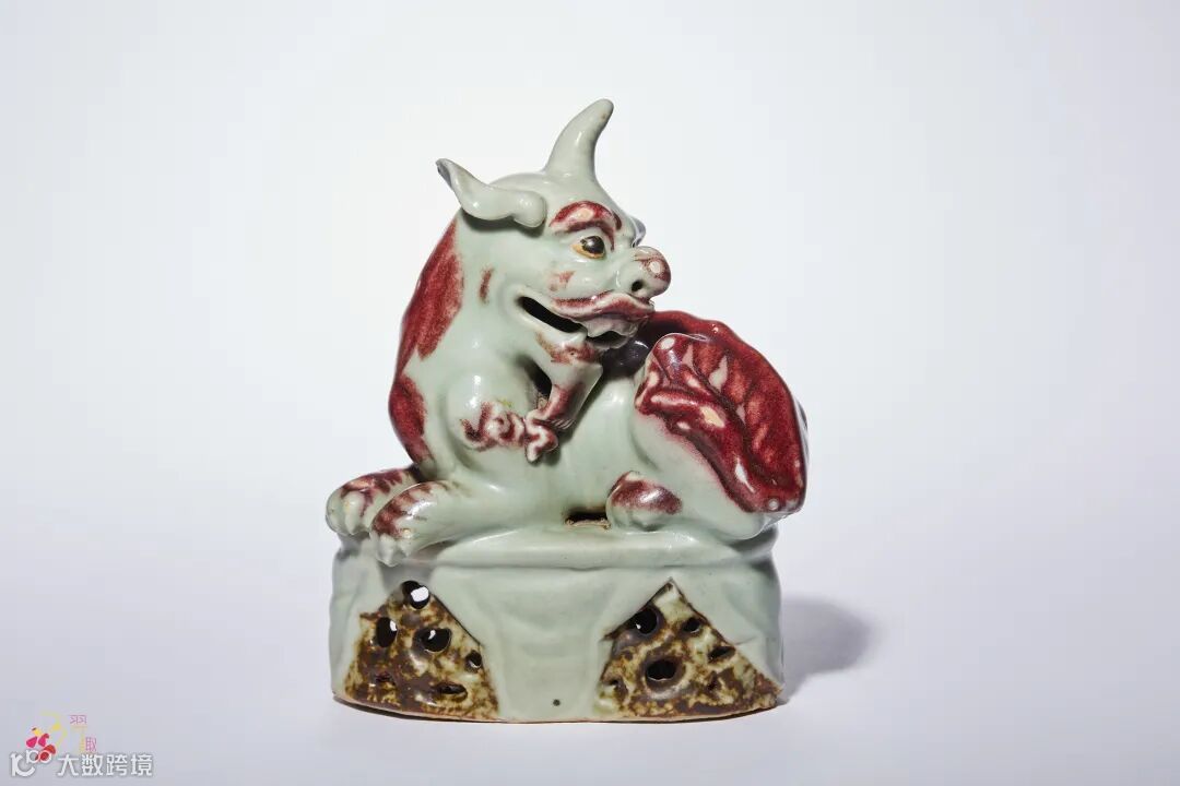 豆青地釉里红瓷塑獬豸 高:17 cm. 来源:国营文物商店