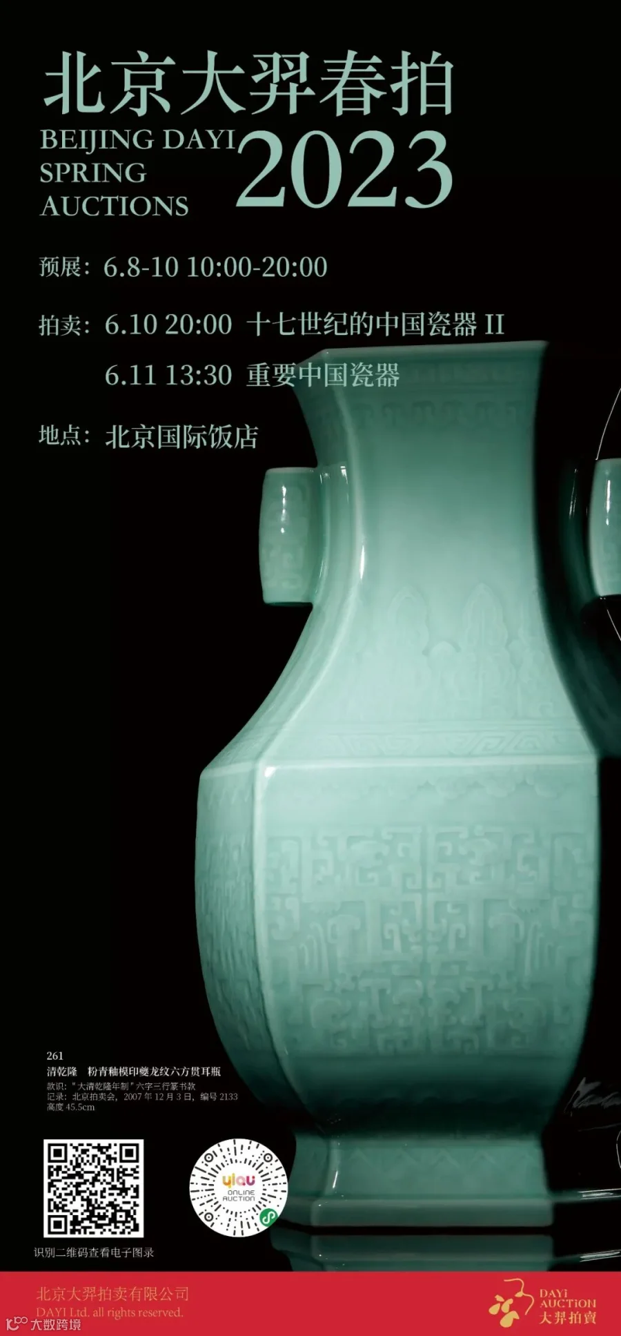 北京大羿2023年春拍已于北京国际饭店主楼二层国际厅盛大开幕。本次春拍,“羿”团队一如既往致力于挖掘拍品背后的文化底蕴,拍卖图录更以全新的视觉效果,为各位呈现艺术的魅力以及大羿的学术底蕴。一路走来的足迹,有坚持更有创新。
