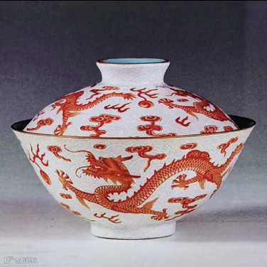 清乾隆 白地轧道描金矾红龙纹盖碗