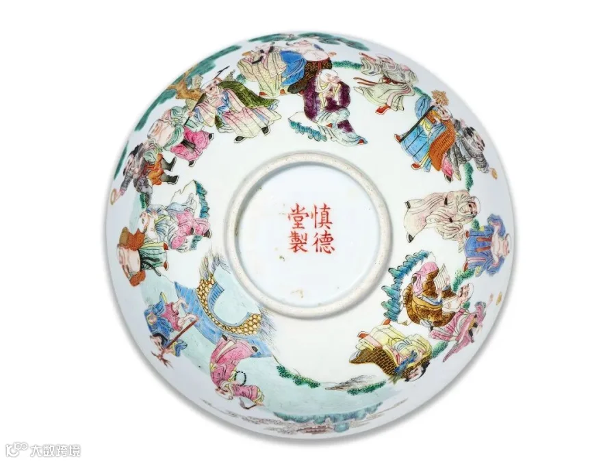 拍品为清道光御窑“慎德堂”款瓷器中存世较为少见的精品佳作,与北京故宫博物院清宫旧藏道光“慎德堂制”款粉彩十八罗汉碗造型、纹饰、款识完全相同,据清宫九江关呈贡档记载,曾烧造并进贡“十八罗汉大碗二十件、十八罗汉中碗二十件”,拍品可与呈贡档相互印证,颇为珍贵。