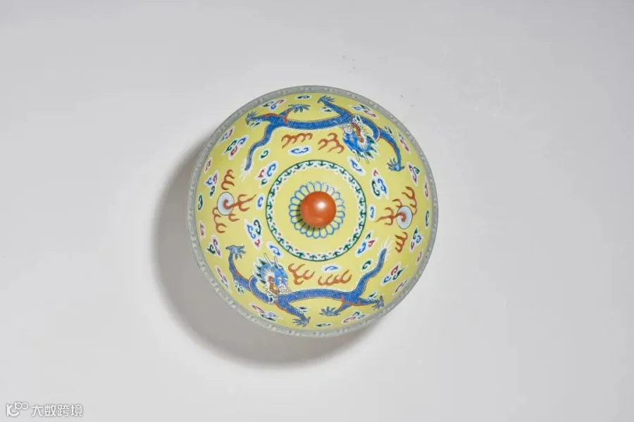 参阅:香港佳士得,2021年5月28日,编号2951 清乾隆 柠檬黄地粉彩九龙纹盖登