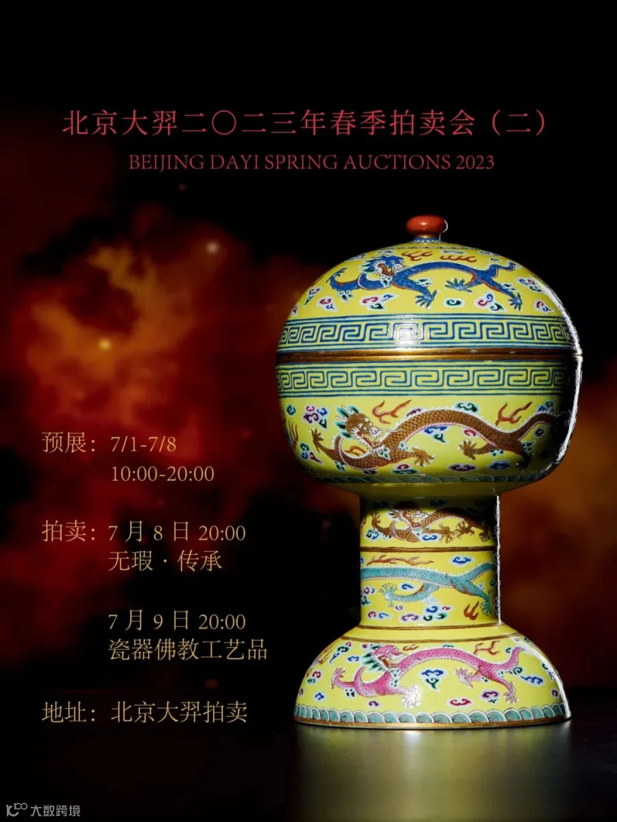 北京大羿2023年春拍(二)将于7月1日开启预展大幕,7月8日至9日举槌拍卖,拍卖地点为北京大羿拍卖。