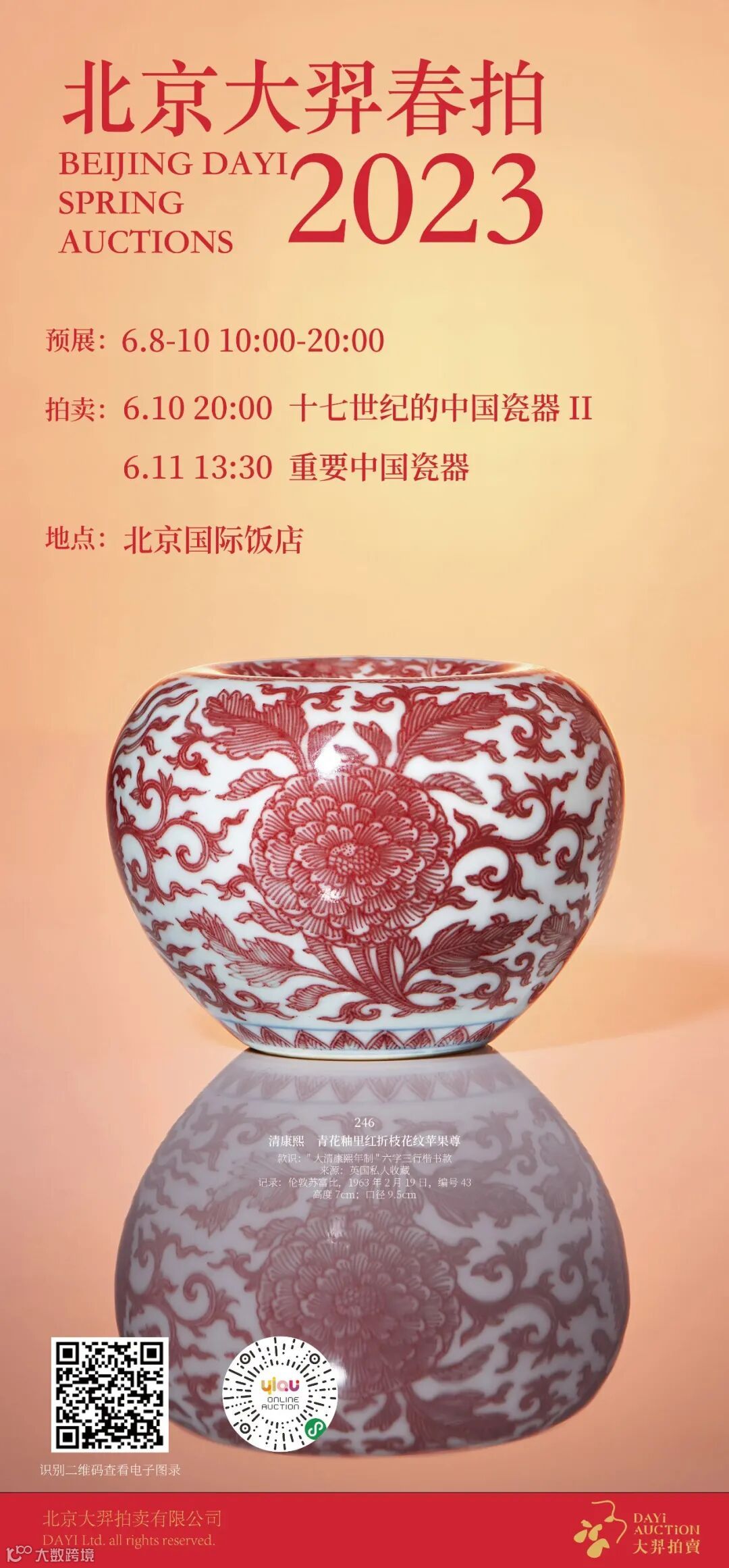 6月8日,北京大羿2023年春拍将于北京国际饭店拉开帷幕,6月10日-11日举槌拍卖。预展现场现代与人文元素互相交织,现代化的空间装载着历史的痕迹。静谧的青花,高雅的色釉,繁缛的粉彩,亦或是奔放的五彩,每一件器物就像一场不断放映的电影,诉说着曾经的辉煌。