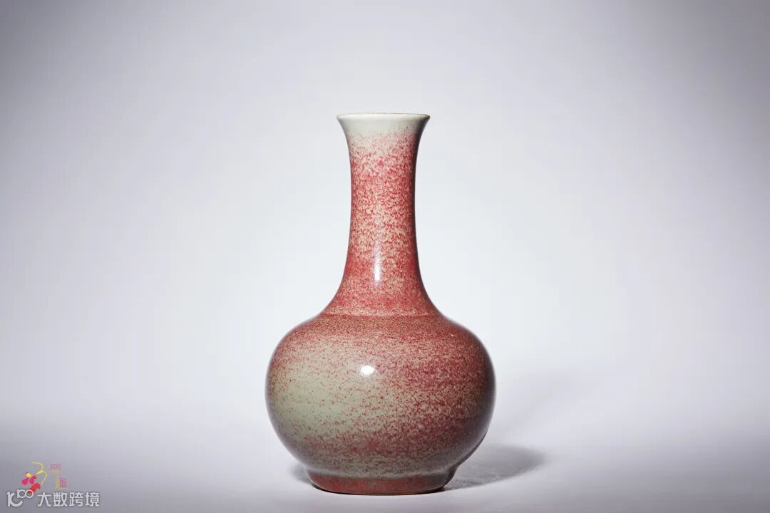 拍品撇口,束长颈,圆腹,圈足。器身线条流畅自然,釉料汁水莹润,红釉流淌自然,红白交织而精神灵动。此瓶为一件陈设精品,可用作插花之器,满室盈芳。