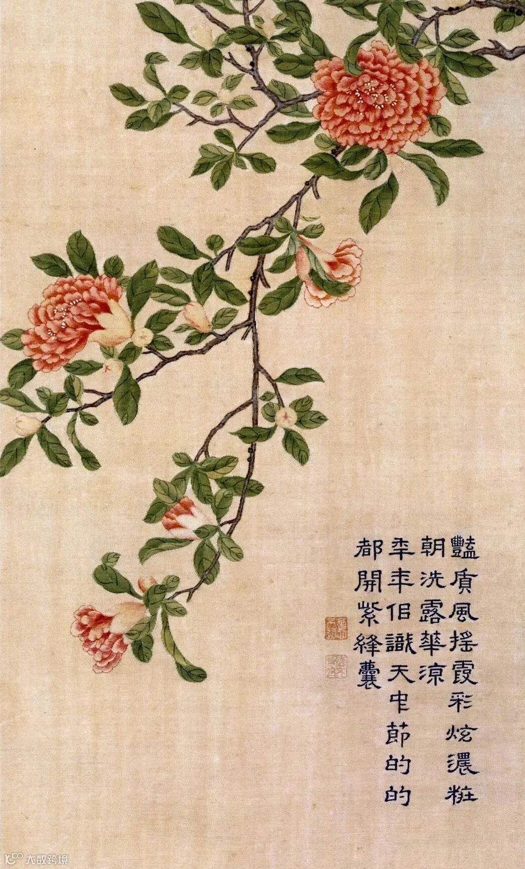 右:清乾隆 御制诗花卉图册之石榴花缂丝