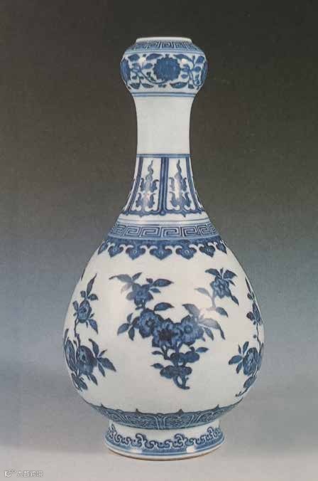 右图:清嘉庆 青花竹石芭蕉图玉壶春瓶(北京故宫博物院藏)