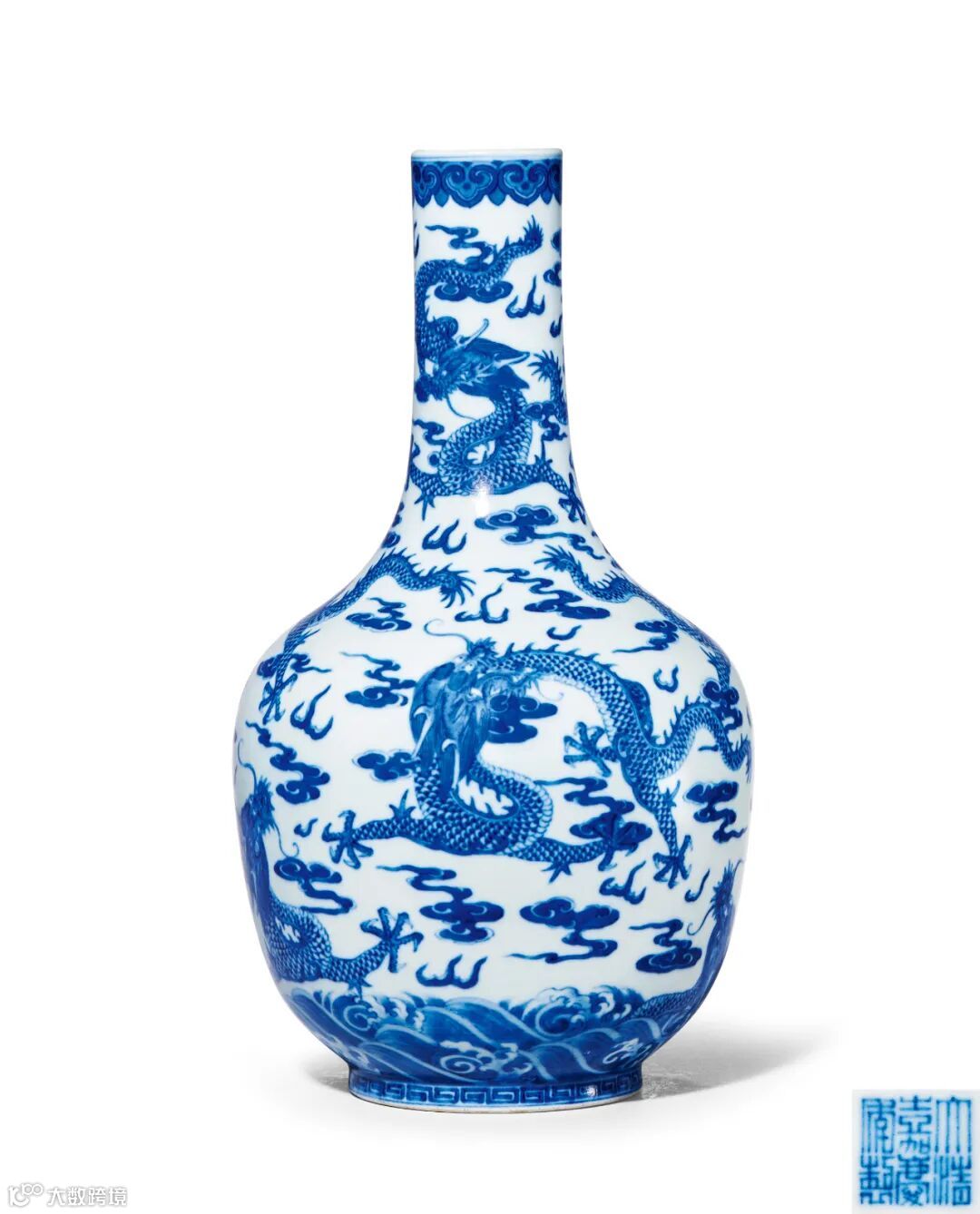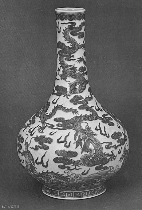 右图:清嘉庆 青花海水云龙纹瓶(台北故宫博物院藏)