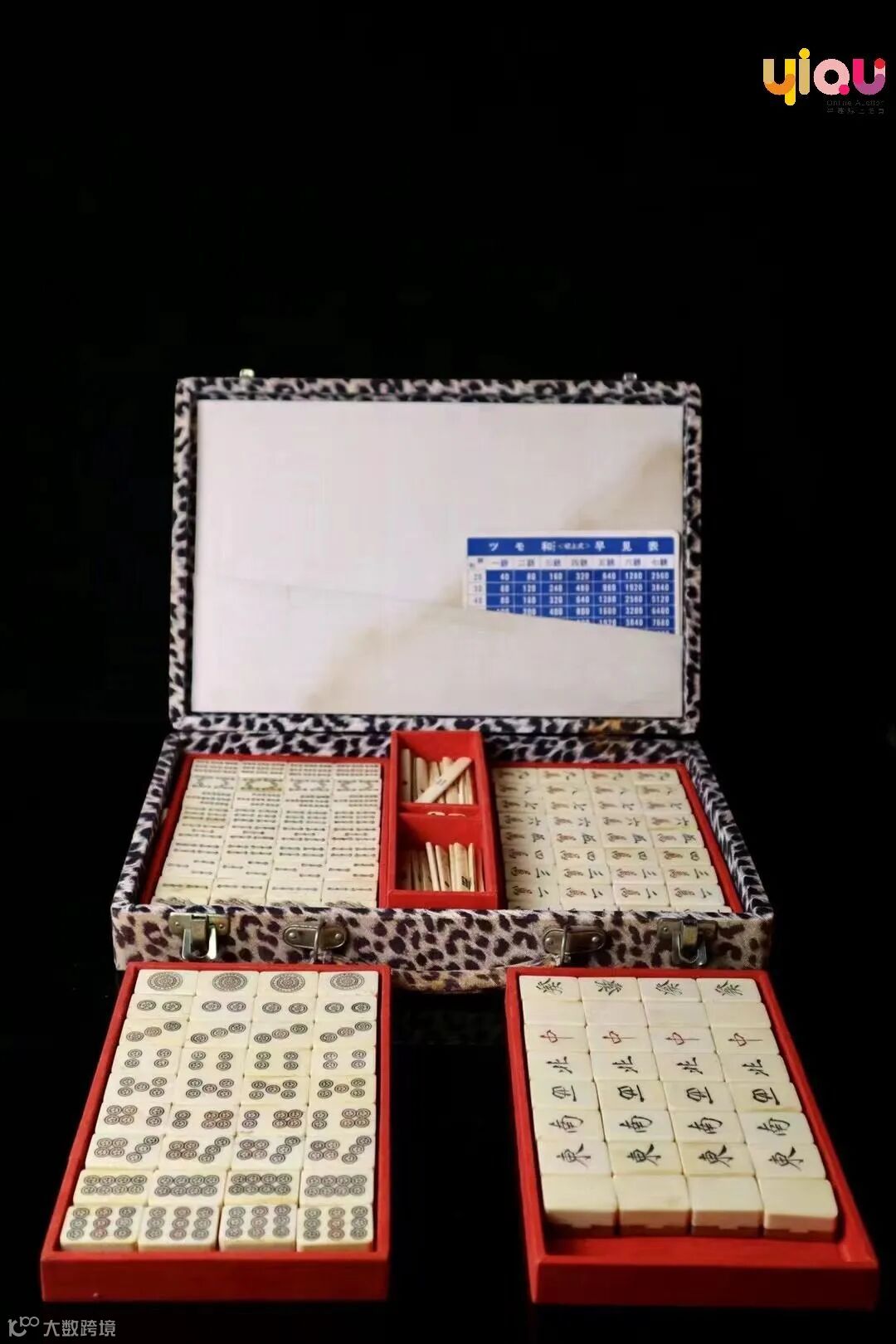 昭和(1926-1989) 豹纹盒竹骨麻将