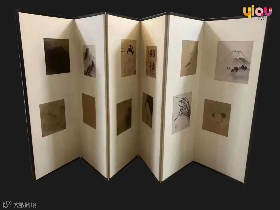 屏风是白凤时代(645年大化元年开始到710年)从中国传到日本的。日语中「屏風びょうぶ」和中文的「屏风」意思相同,是用来挡风和遮挡视线的一种家具,同时也是所有者彰显权威的象征物,所以屏风都会施以绘画或者装饰。奈良时代之后,屏风主要是宫廷和寺院在重要的节日庆典仪式上使用。到了室町时代,合页的发明使屏风的样式也发生了变化,变成了我们现在所熟知的折叠式的样子,这也成为屏风的固定样式流传了下来。此件拍品实木纸本 绘山水 人物 书法 花草等题材(单面,作品共12幅)适合空间布置 增添茶空间调性。