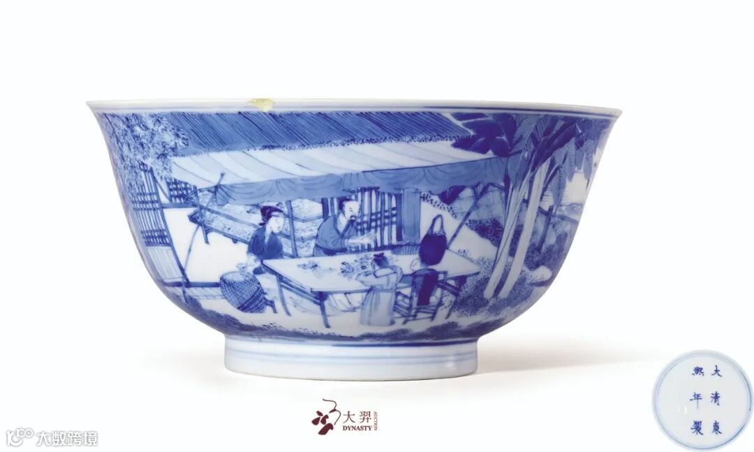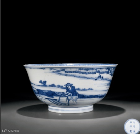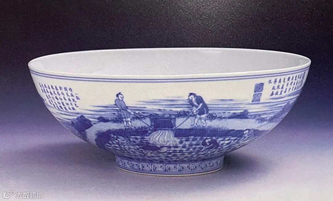 市场上也流通过几只康熙时期的青花耕织图纹碗。成交价格方面,流传有序,来源清晰,以供各位参考。