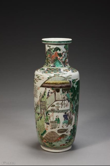 北京故宫博物馆藏 清康熙五彩耕织图棒槌瓶
