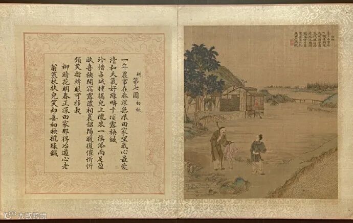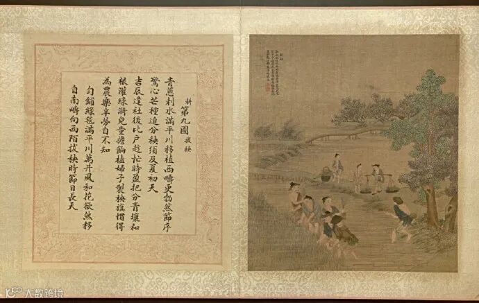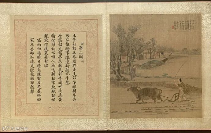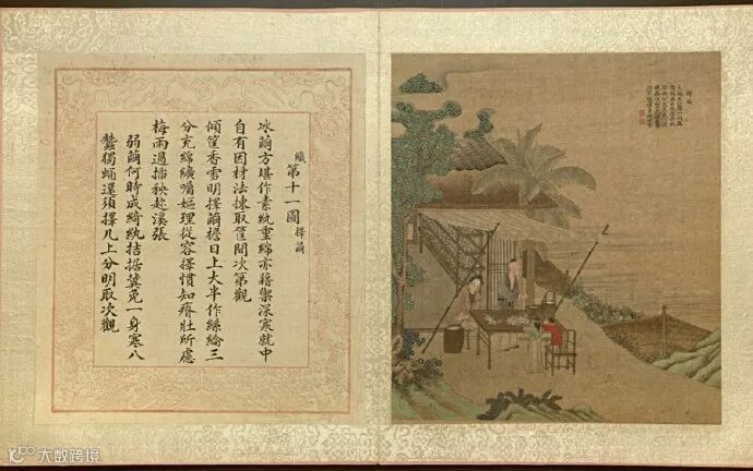 中国自古以农耕为本,历代帝王对农桑极为重视。《耕织图》便是我国古代为劝课农桑,采用绘图的形式详实记录耕作与蚕织的系列图谱。由于其“图绘以尽其状,诗文以尽其情”,形象生动、细腻传神地描绘了劳动者耕作与蚕织的场景和详细的生产过程,而起到了普及农业生产知识、推广耕作技术、促进社会生产力发展的巨大作用,其本身也成为极其珍贵的艺术瑰宝。而以耕织为图始于唐代,至南宋楼俦绘成《耕织图》进呈,才有此名。