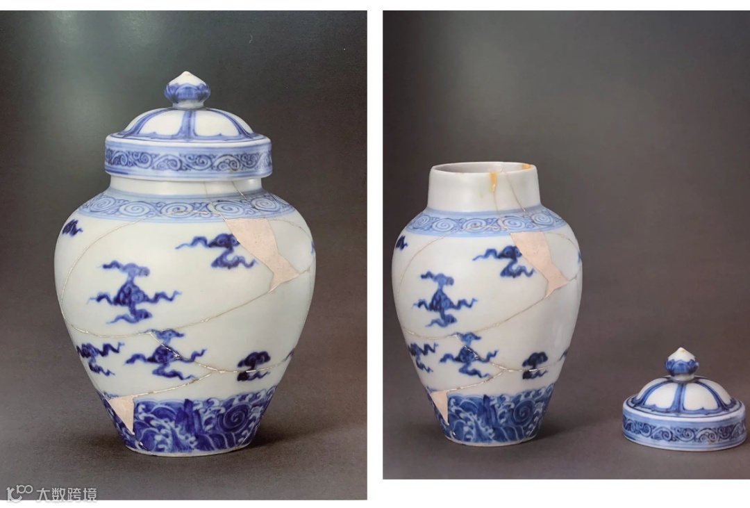 明代景德镇御窑厂各时期风格完全由皇帝的喜好决定,“大抵诸器惟 官窑有其制”,“凡器之成必有依据”。万曆一朝,奢靡之风大盛, 朝廷对瓷器需求更甚,不断下发各式瓷样命窑厂烧造,如万曆十一年降发的瓷器样式就多达 443 件,而万曆十九年降发的瓷器样式更是有 461 件之多。由于烧造数量庞大,其时器型、纹样无不新巧增奇,本品即为其中佳作,通体以青花为饰,至上而下为缠枝花卉纹,海水龙纹,海八怪纹及变形蕉叶纹,整器笔意稚拙可爱,布局相配得当,交相辉映,极具神采,自有万曆时期粗犷之风格。