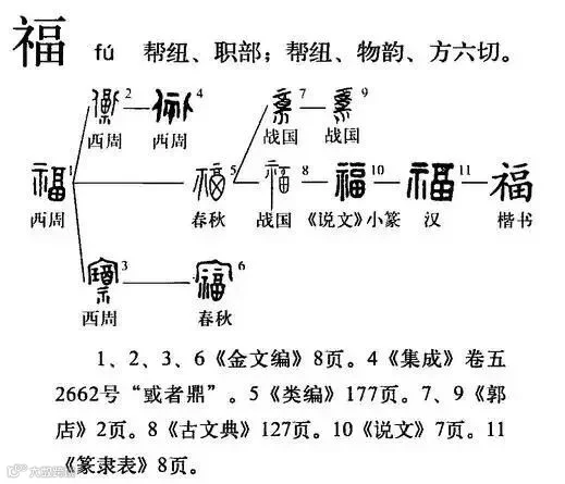 “福”字,最早见于甲骨文,象形性很强,甲骨文中的“福”字为合体会意字,与祭祀祈祷有关,那时的“福”字为“双手举酒祭天”的象形文字( “示”为“祭祀”,“酉”表“酒坛”),意在于“用美酒祭神,祈求富足安康”。
