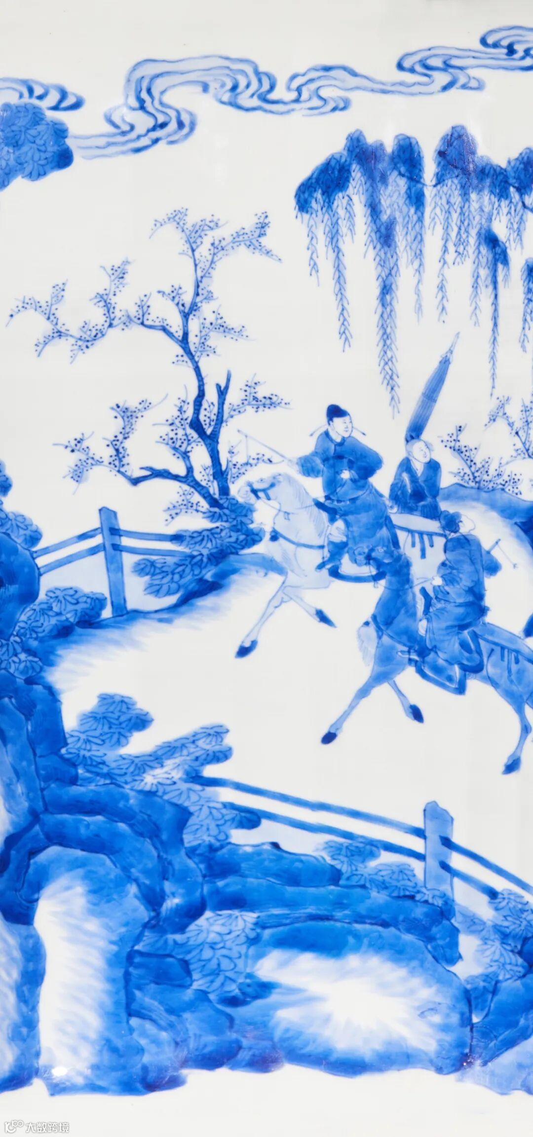 在百花齐放的中国瓷苑中,青花瓷器是一株韵味独具、曼妙多姿的丽葩,其起源于唐,成熟于元,并在明清两代不断结出精彩缤纷的硕果,达到一个又一个高峰。然康熙朝之青花,不同于永宣之雄劲恢弘、成化之淡雅秀丽、嘉万之浓郁靓艳,墨分五色,技法精绝,品类之盛,数量之多,流传之广,色泽之青翠,蜚声海内外,《饮流斋说瓷》赞曰:“硬彩,青花均以康窑为极轨。”亦有康熙青花“独步天下”之美誉。