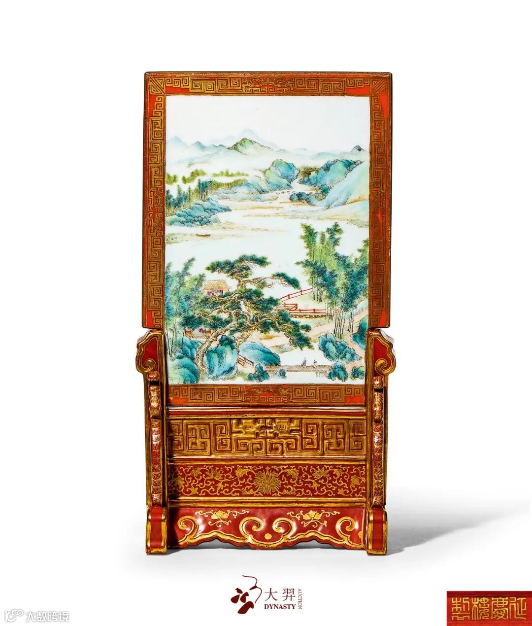 总统曹锟定制粉彩山水人物纹插屏