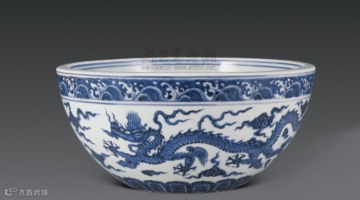 LOT514 明宣德 青花云龙纹钵(局部图)