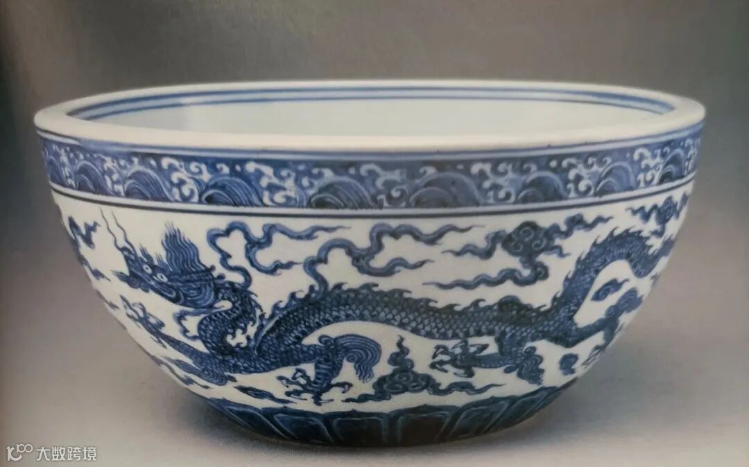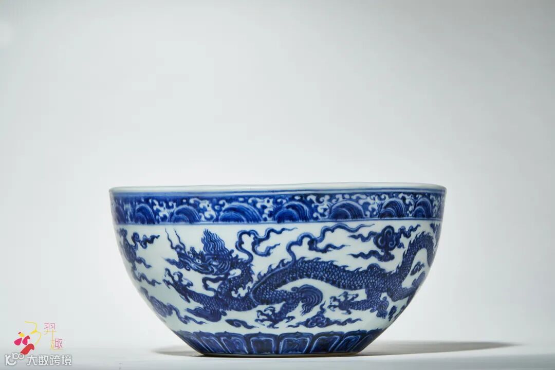 宣德时期御器厂的品质控管非常严格。宣德地层出土的大量残品便揭示了当时严格的品质要求,任何一件无法达到标准的器皿皆被摧毁掩埋。而此件钵厚壁,平口,弧腹,卧足;外壁通体以青花绘制云龙纹。龙形威猛,闭口鼓目,为宣德龙纹之典型。