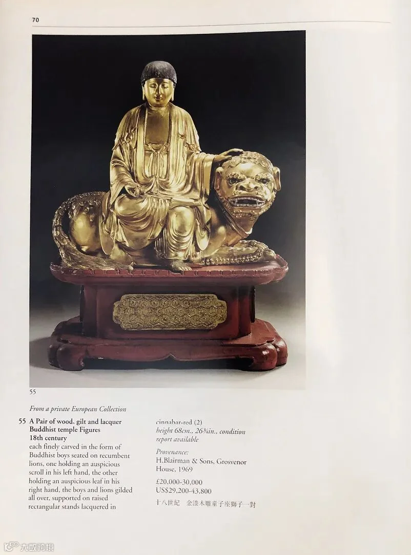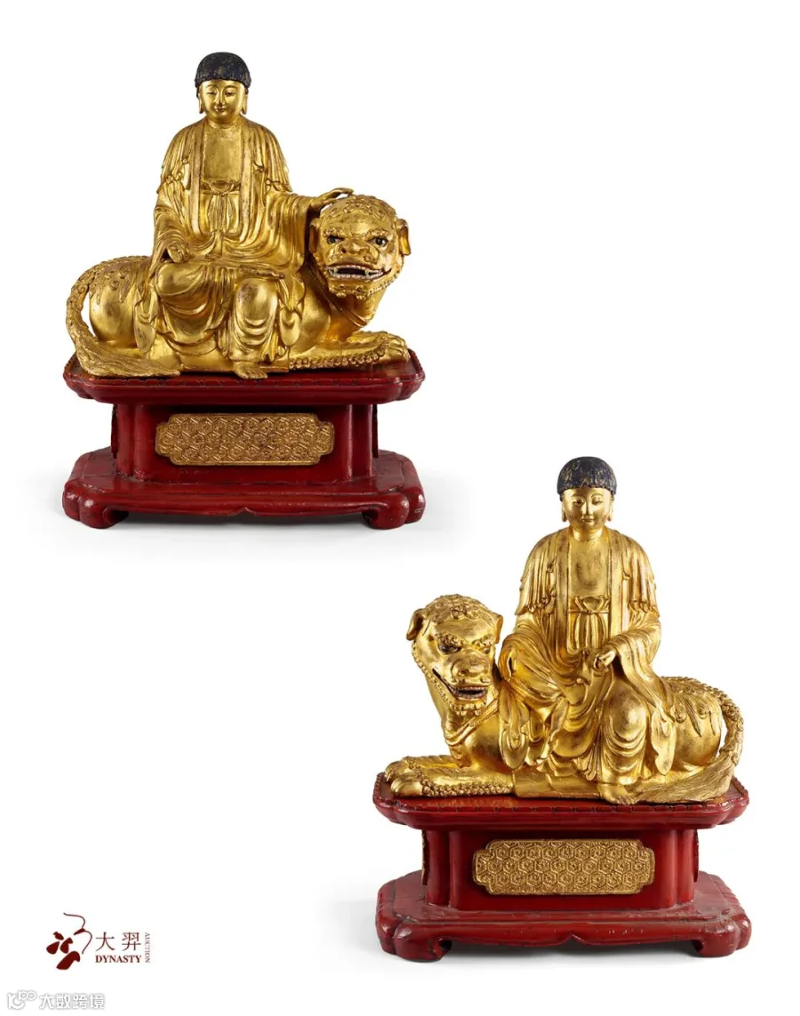 伦敦苏富比2001年11月14日编号55 清 金漆夹 观音菩萨与文殊菩萨像