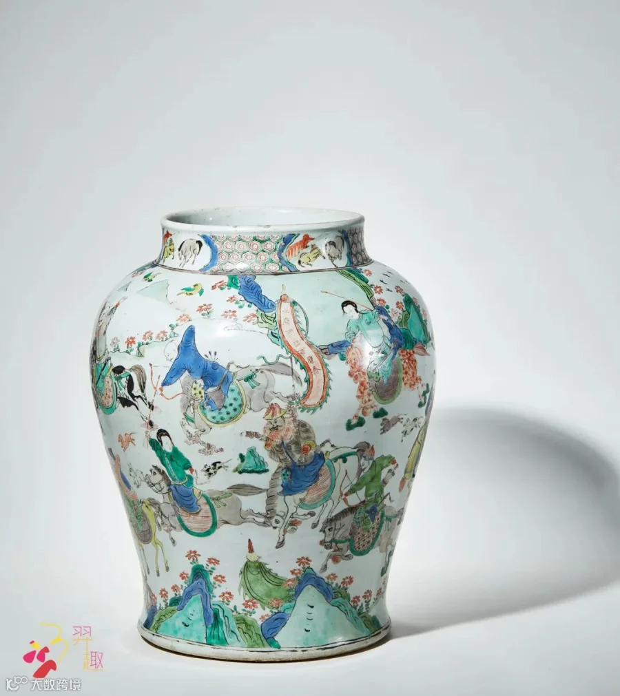 五彩人物狩猎图大罐