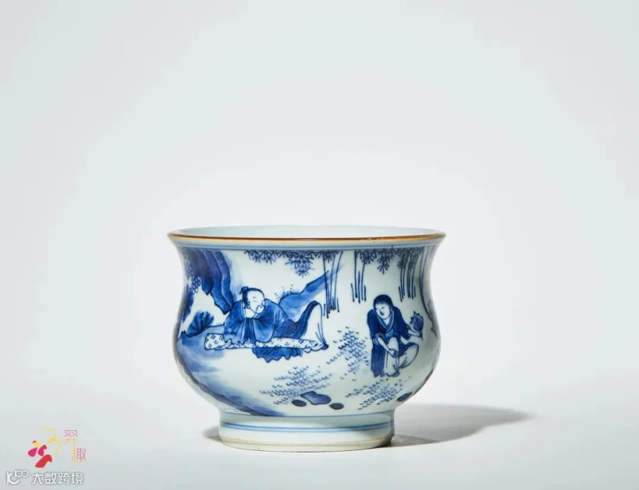 晚明清初交替之间,出现了一批“上品细料器”(引自《天工开物.陶埏》语:“如上品细料器及御器龙凤等,皆以上料画成,故其价每石值银二十四两……)之青花瓷,其胎质细腻,釉水凝厚光润,青花发色青翠明快,绘艺精湛,无论器物造型、纹饰内容及其绘画风格,都充满着世俗生活与文人气息浓厚之独特风貌,令人耳目一新,此类大都制作精良,品质上乘,且曰之为“明末清初之‘过渡期’青花瓷”。它是一座由民窑主导筑起的青花瓷艺术高峰,为瓷绘史留下了不可磨灭的“浓墨重彩”的一笔。