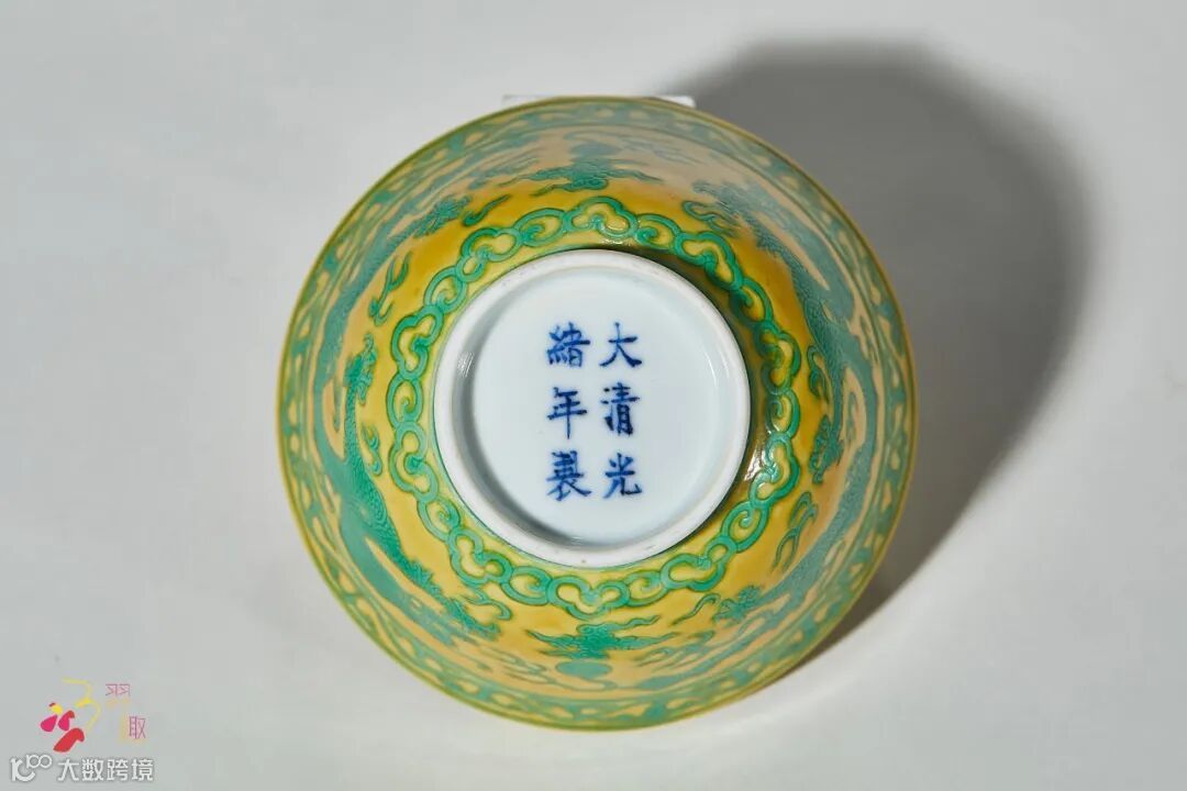 LOT513 清光绪 黄地绿龙纹碗(底部图)