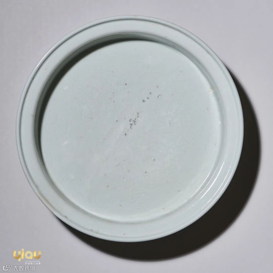 拍品作盘口,浅腹直壁,平底,六足。通体施白釉,洗心暗刻云龙纹,龙身雄壮,器宇轩昂;外壁模印行龙纹,龙逐珠而行,形态威武。白釉莹润光亮,纹饰流畅生动。洗底书“大明成化年制”六字双行楷书款。