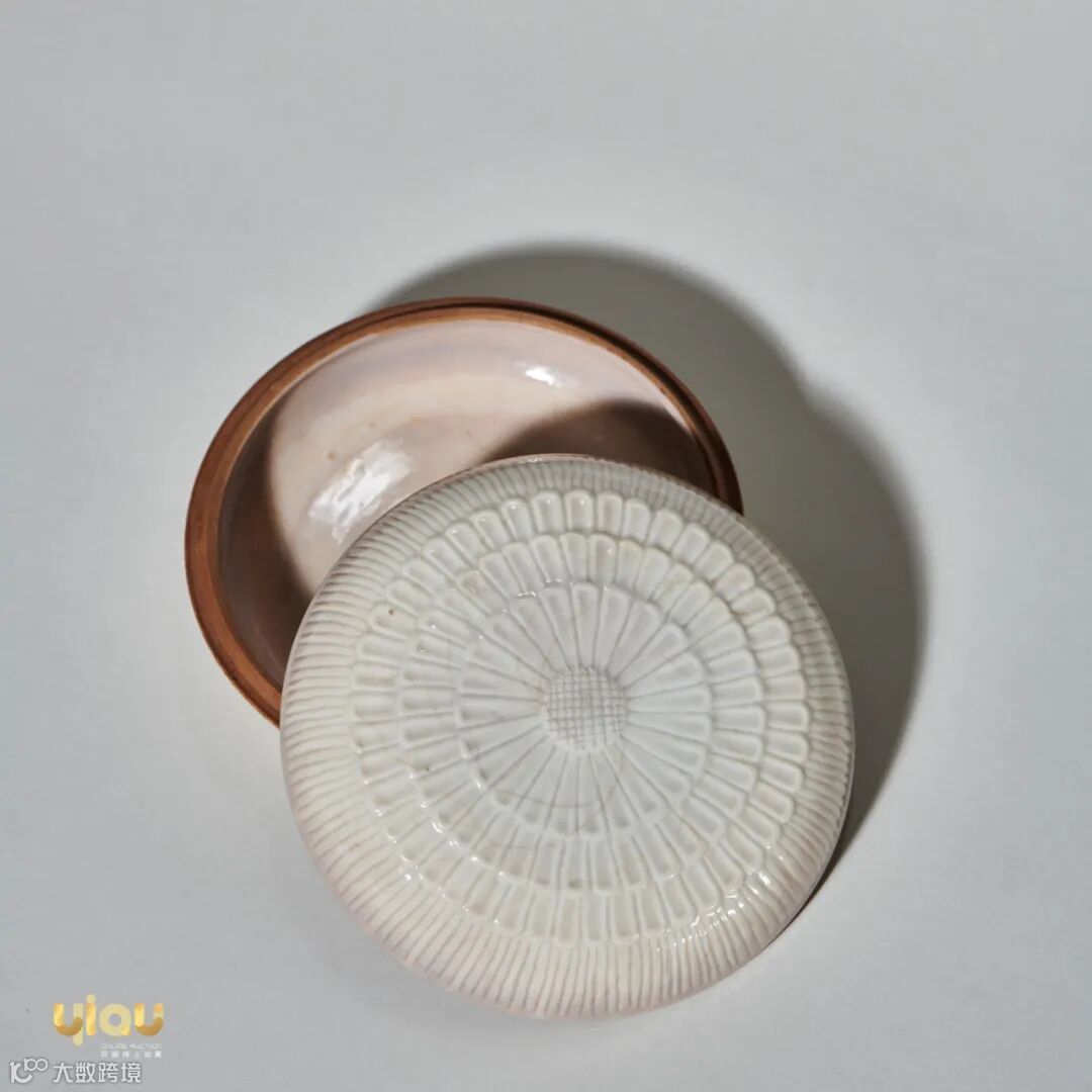 LOT935 清十八世纪 浆胎仿定窑菊瓣纹盖盒