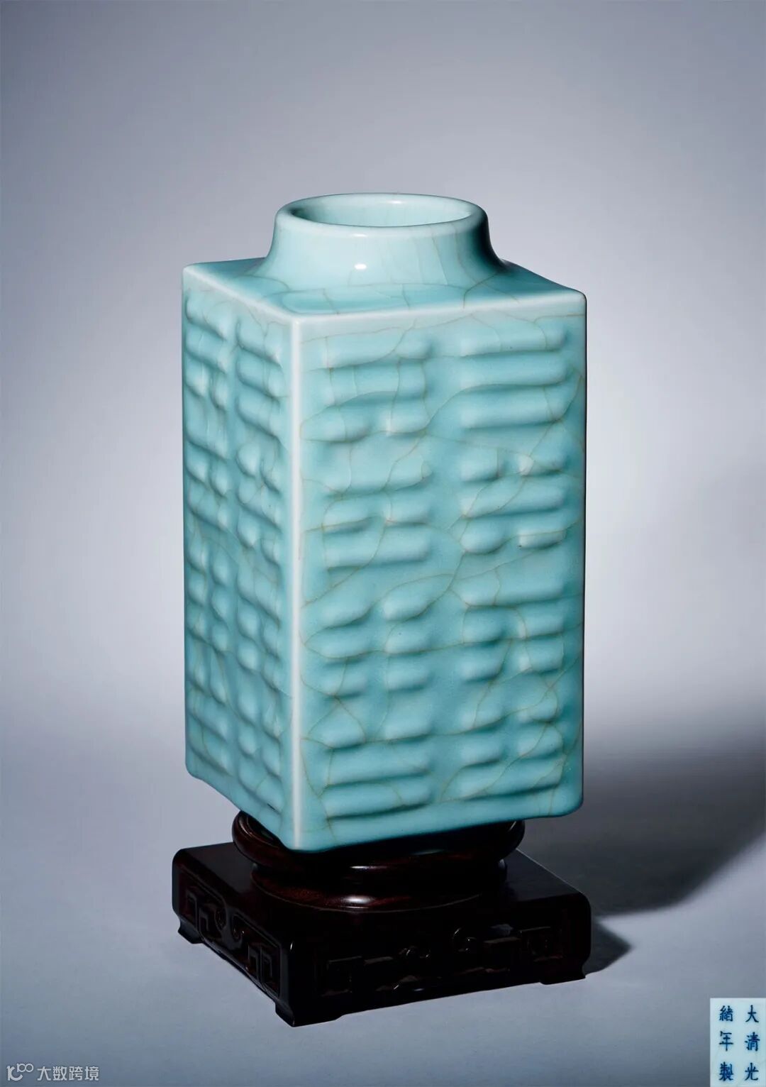 LOT378 清光绪 仿官釉八卦琮式瓶