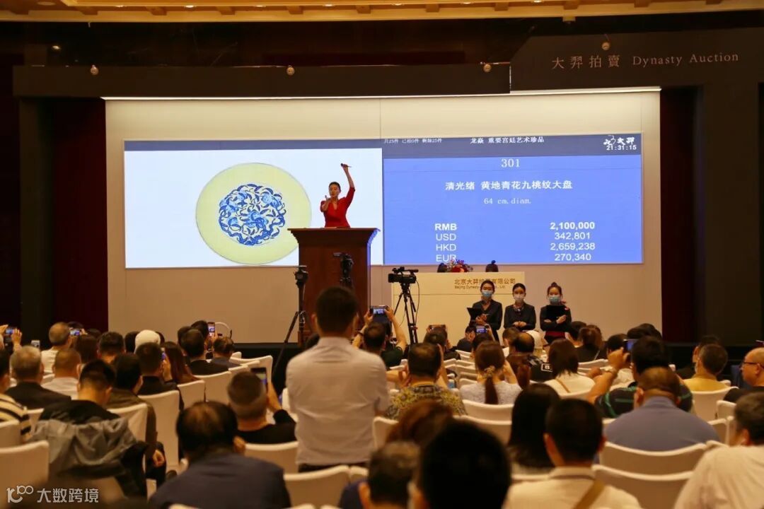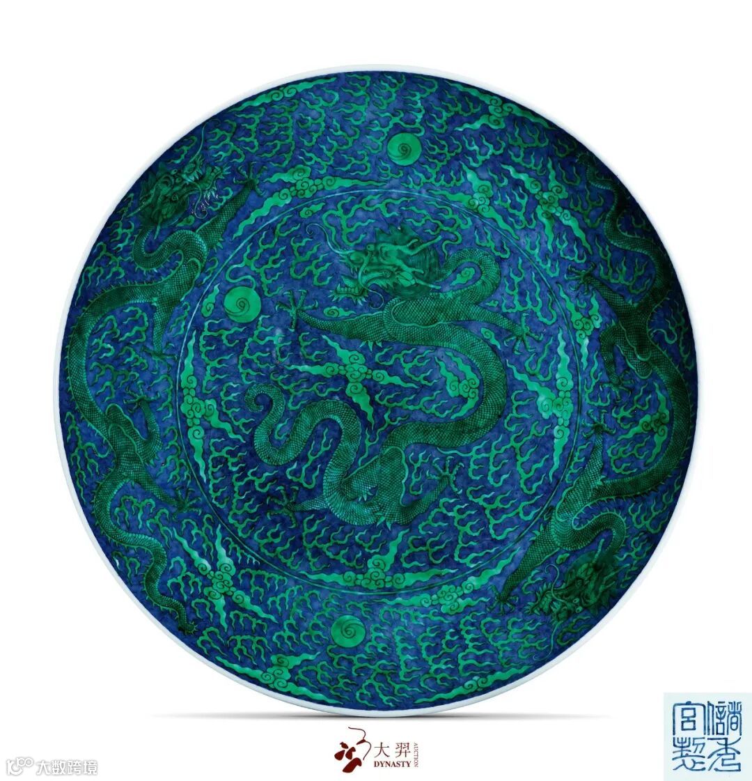 大家一定还记得,北京大羿2021春季拍卖会中,三只储秀宫制大盘气势磅礴,令众人流连忘返,仿佛从中可以看到慈禧五十大寿的盛大。三只大盘也极具历史价值,根据《清宫瓷器档案全集》卷四十一记载:“光绪需要烧造的瓷器品目有“黄地双龙大盘”、“白地五彩大盘”、“青西莲大盘”、“蓝地黄云龙大盘”、“蓝地绿龙大盘”、“黄地绿龙大盘”、“粉地紫龙盘”、“黄地九桃盘”和“黄地西莲盘”。其中,大盘均要求烧制一尺三寸见圆、一尺五寸见圆、二尺见圆、二尺五寸见圆各六对,六种图样的大盘共计烧造一百四十四对,即二百八十八件。其余三种盘的尺寸包括一尺五寸见圆、二尺见圆和二尺五寸见圆,以及七寸见圆与八寸五分见圆这两种规格中的一种,即每种盘均有四种规格。"粉地紫龙盘"四种规格各烧造六对(含「外备用二对」),"黄地九桃盘"和"黄地西莲盘"四种规格各烧造三对(含「外备用一对」),共计四十八对、九十六件,均署青花篆书「储秀宫制」四字款。"可以看出光绪十年(1885),慈禧在五十大寿时,又重新搬回储秀宫居住并掌管政权,故此这三只大盘是慈禧“二度垂帘”的证物,更是晚清官窑的代表作品。