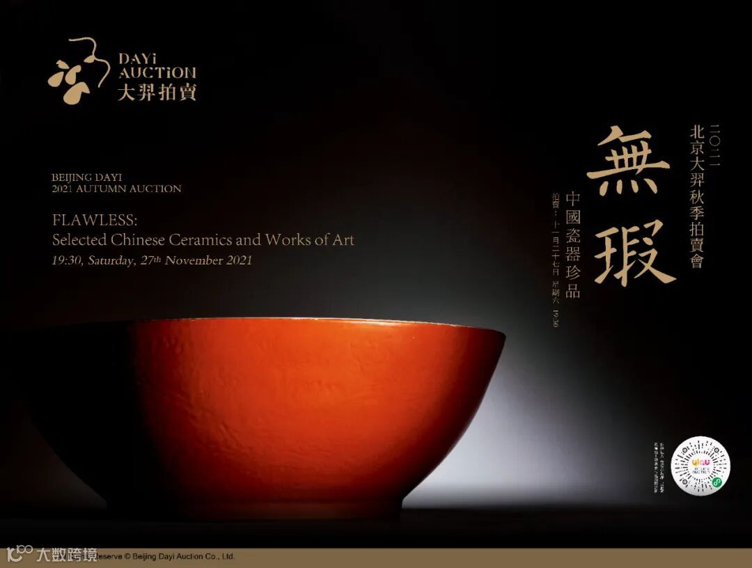 “瑕”者,《说文解字》云:玉小赤也。从玉叚声。“无瑕”者,指玉上没有斑点,引申为器物没有缺点或毛病。对全美佳器的追求,促使我们开创了《无瑕:中国瓷器》专场。《无瑕》是一场不需要品相报告的专场拍卖,专场中的拍品件件经过精心遴选,毫无品相问题,完美无瑕。大羿承担此专场任何品相问题的责任。