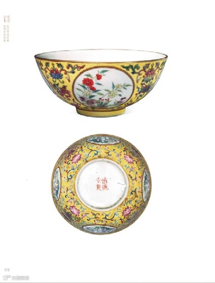 翻阅现存著录可知北京故宫博物院共藏有慎德堂器皿357件,而现留存下来清宫旧藏署『慎德堂制』款瓷器298件,拍品即为慎德堂款瓷器,传世难得,称为可贵。而此品LOT302 清道光 黄地粉彩描金开光花卉暗八仙纹小碗,清代宫廷年节用碗,与故宫博物院清宫旧藏清道光黄地粉彩描金开光花卉暗八仙纹碗相同[参见于《故宫博物院藏慎德堂款瓷器》,故宫出版社,2014年,页172],故宫统计此式样碗仅见三件,碟、盘八件,晚清时大部分置于诚肃殿,由此可知拍品之稀珍可贵,传世不可多得。