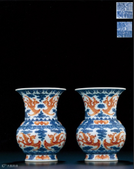 清乾隆青花矾红彩夔凤纹尊一对