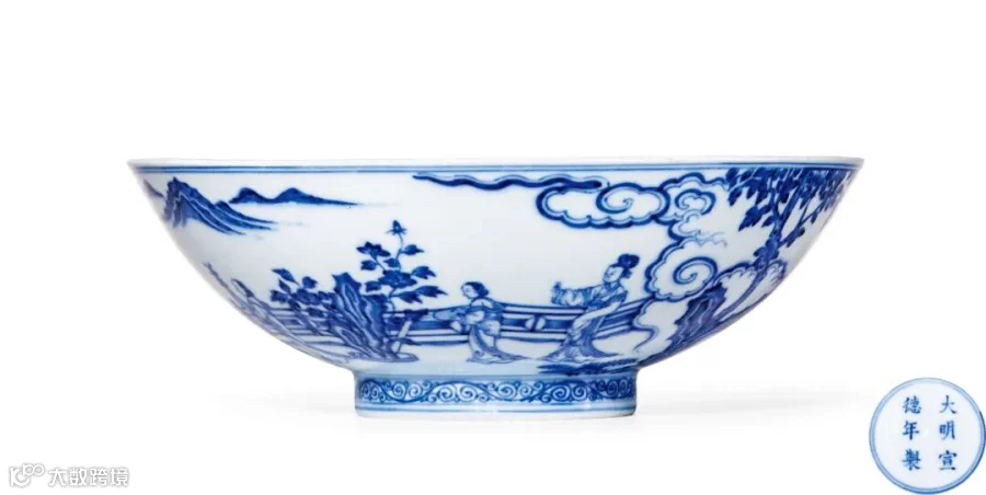 LOT827 清康熙 青花庭院仕女图大碗